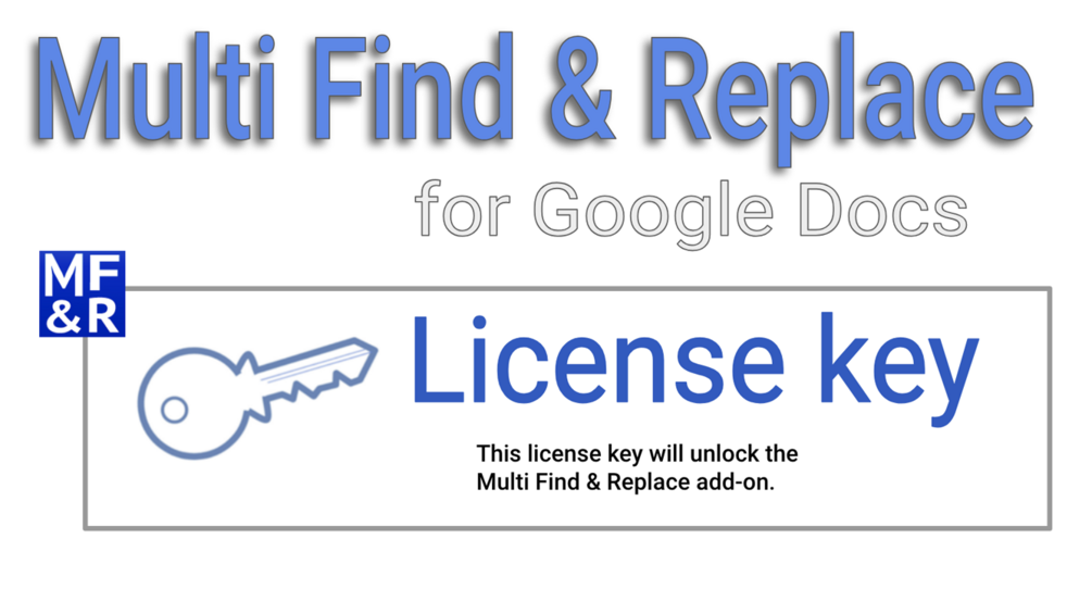 The Multi Find & Replace license key is used to permanently unlock the Multi Find & Replace Google Doc add-on.